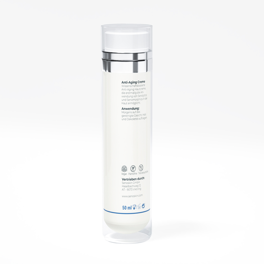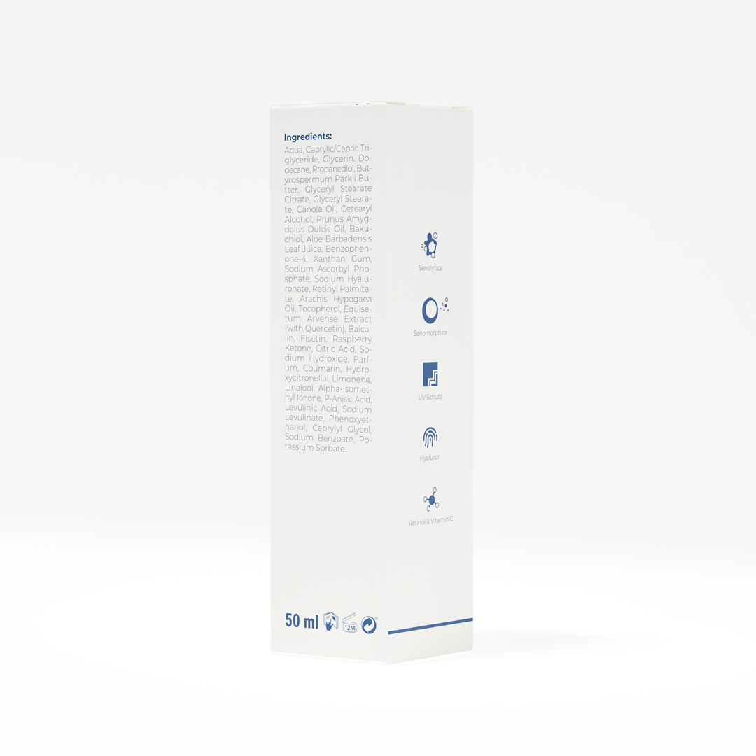 Wissenschaftsbasierte Anti-Aging Hautcreme, die erstmalig die Anwendung von Senolytics und Senomorphics in der Haut ermöglicht.